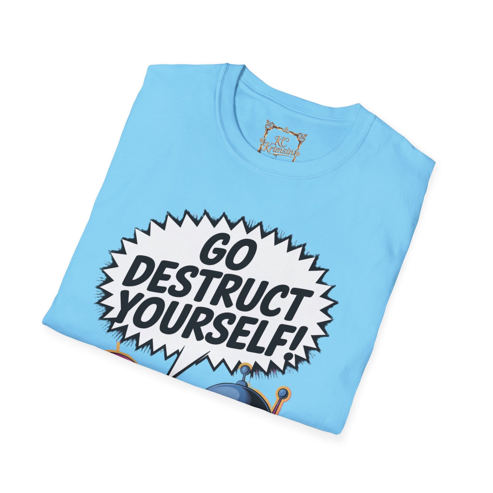 GO DESTRUCT YOURSELF robot tee, Unisex Softstyle T-Shirt